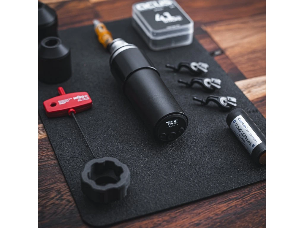 ausgestattet mit 2 Batterien und einem passenden Ladegerät, 3 Antriebsköpfen, Werkzeugen, einer Gebrauchsanweisung und einigen Ersatz-O-Ringen.