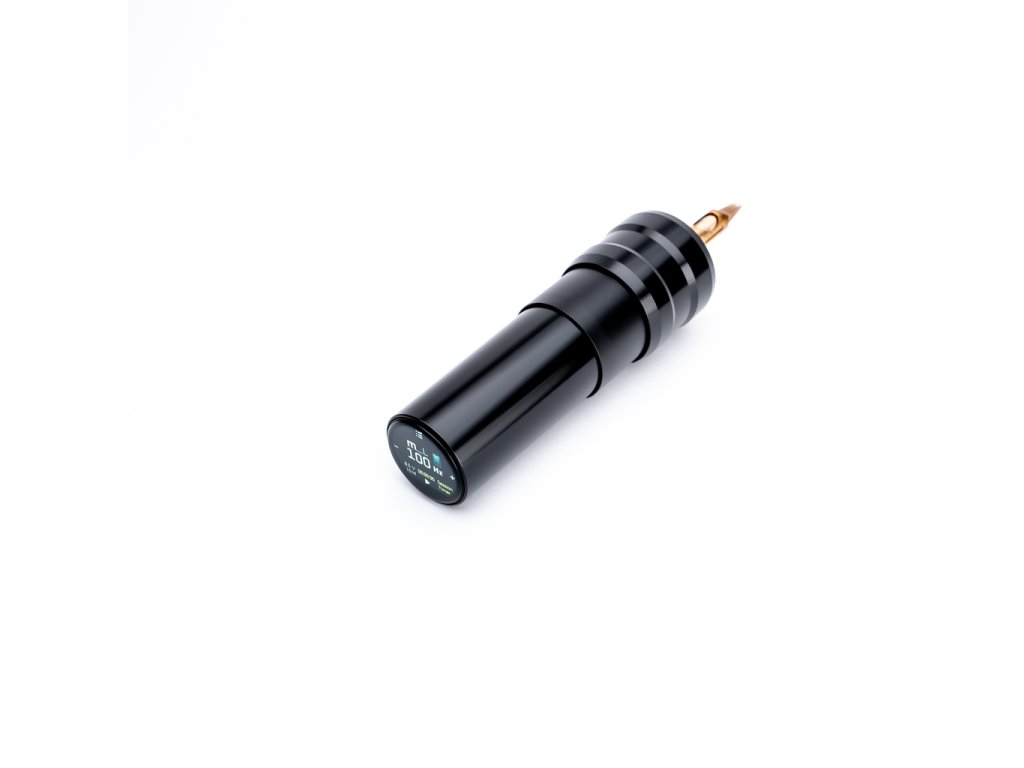 Die ACUS M2 ist eine moderne kabellose Tattoomaschine mit fortschrittlicher Elektronik, variablen Betriebsmodi, einstellbarer Nadeltiefe bis zu 4,5 mm und einem Frequenzbereich von 36 Hz bis 140 Hz (3 V bis 12 V). Der Motor ist ein bürstenloser Faulhaber 2214 BXT aus deutscher Fertigung. Das Gehäuse besteht aus eloxiertem Aluminium, ist werkzeuglos zerlegbar, kompatibel mit 33-mm- und 40-mm-Griffen und kann im Autoklaven oder Ultraschallreiniger sterilisiert werden. Auf der Rückseite befindet sich ein vollwertiges Display mit 4-Wege-Joystick, Speichermöglichkeit für bis zu drei benutzerdefinierte Voreinstellungen, wahlweise Anzeige von Spannung (Volt) oder Frequenz (Hz), Messung der Sitzungszeit und weiteren Funktionen wie Helligkeitsregelung und automatischer Displayabschaltung. Die Maschine unterstützt Software-Updates über den USB-C-Anschluss und verfügt über eine LED-Ladezustandsanzeige.