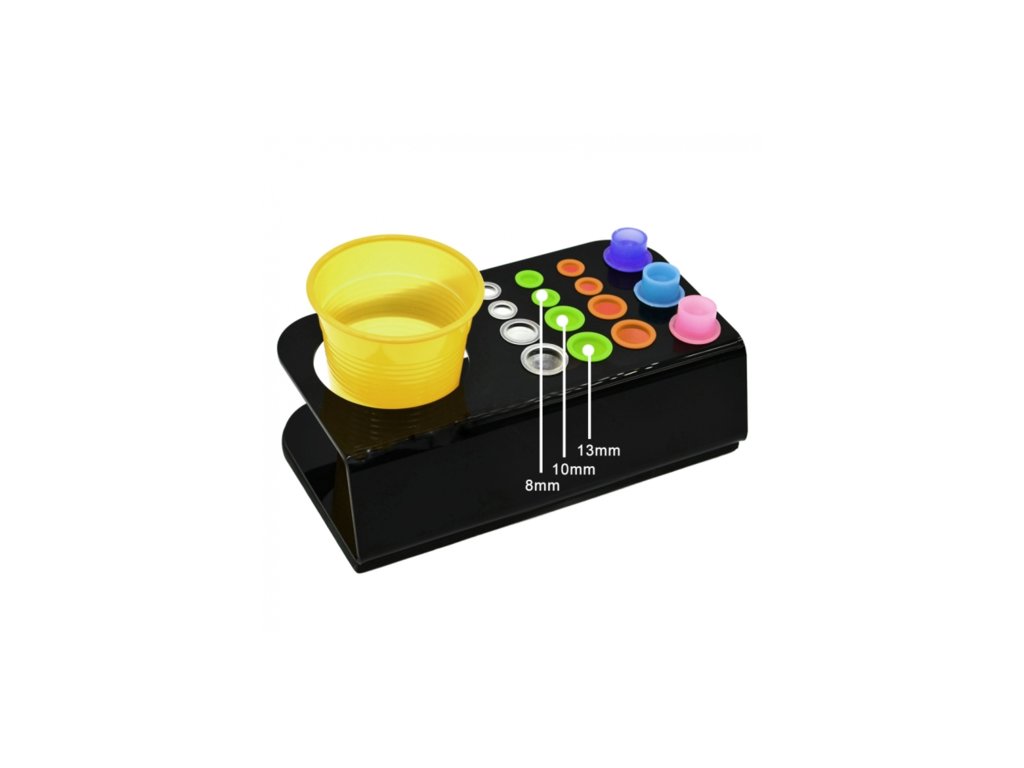 Kunststoffhalter für 12 Tassen und einen Becher. Stabil, der untere Teil enthält einen Magneten für bessere Stabilität auf der Werkbank.