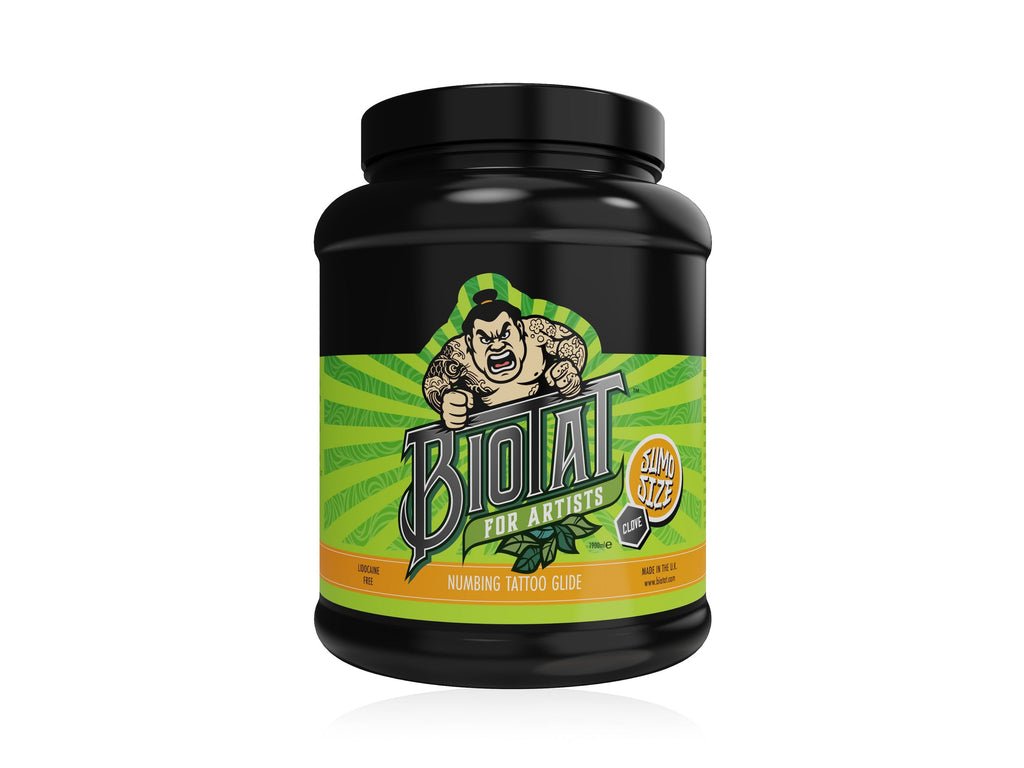 BIOTAT Tattoo Glide Natural ist das ursprüngliche Arbeitsgel, mit dem die ganze Biotat-Ära begann. Es ist so konzipiert, dass es während des Tätowierens sanft über die Haut gleitet und dank des Nelkenöls eine natürliche betäubende Wirkung hat. Dadurch sitzen die Kunden auch bei längeren Sitzungen bequemer und Rötungen klingen schneller ab.