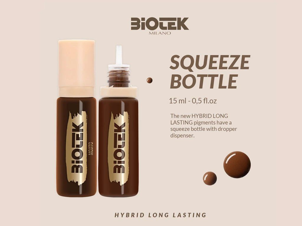 Dank eines speziellen Additivs und einer Pigmentpolymerisation sind die neuen Hybrid-Brauenfarben von Biotek halten noch länger!
