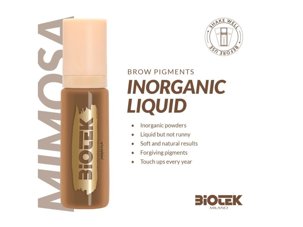 Das Pigment Biotek Mimosa wurde speziell für die Augenbrauen-Schattierungstechnik entwickelt und sorgt für einen weichen, natürlichen Effekt, der sich besonders für helle Hauttypen eignet. Dank des neutralen Untertons entstehen nach der Heilung keine unerwünschten Grau- oder Rottöne. Die Farbe besteht zu 100 % aus anorganischen Bestandteilen und wird in Italien nach strengen europäischen Qualitätsstandards hergestellt. Die hohe Konzentration an Farbpigmenten und die sterile Produktion garantieren eine sichere und stabile Anwendung.