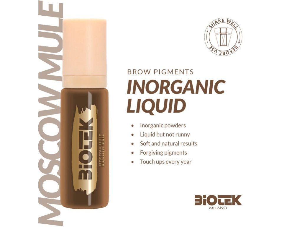 Das Pigment Biotek Moscow Mule wurde speziell für Schattierungstechniken der Augenbrauen (z. B. Pixel-Effekt, Rapid Shading) entwickelt und sorgt für ein weiches, natürliches Ergebnis ohne Grau- oder Rotstich. Dank seines neutralen Untertons eignet es sich ideal für Kundinnen mit heller Haut und natürlich dunkelblonden bis hellbraunen Augenbrauen. Die Farbe besteht zu 100 % aus anorganischen Inhaltsstoffen, wird in Italien hergestellt, entspricht den europäischen Standards für Permanent Make-up-Pigmente, ist vegan und wurde nicht an Tieren getestet.