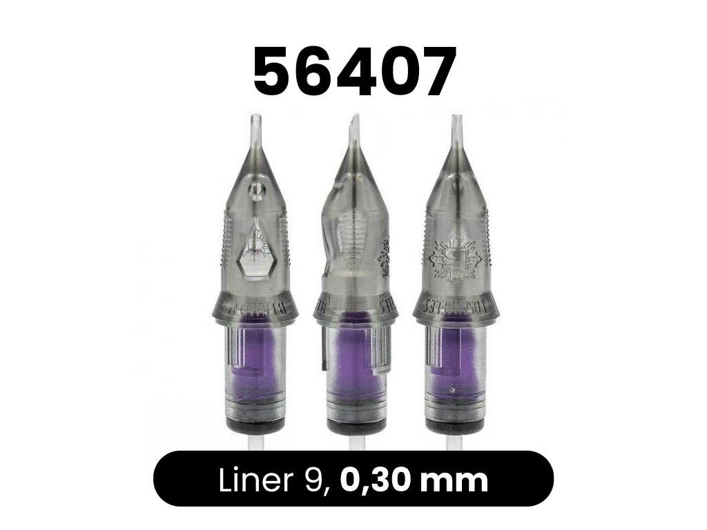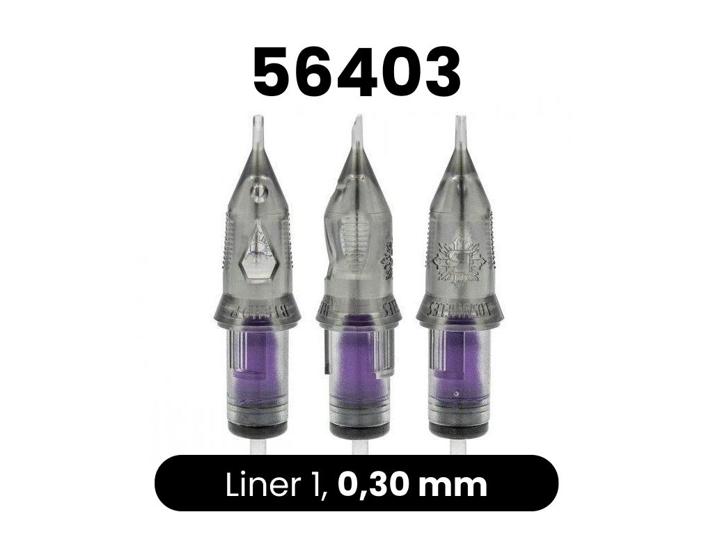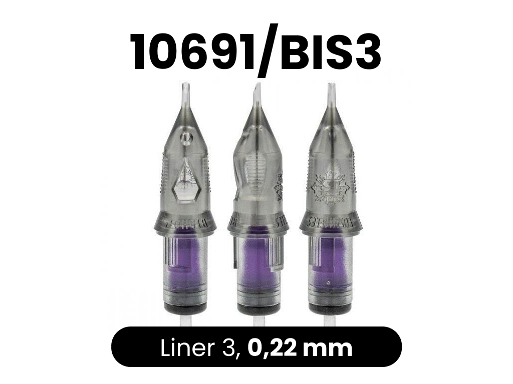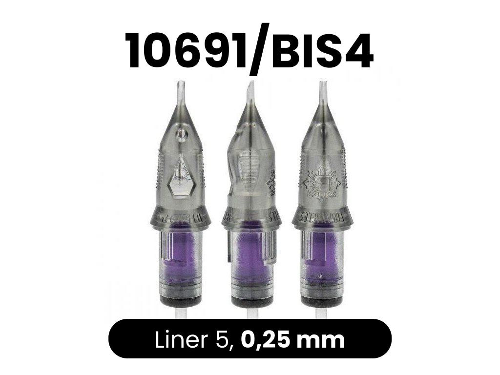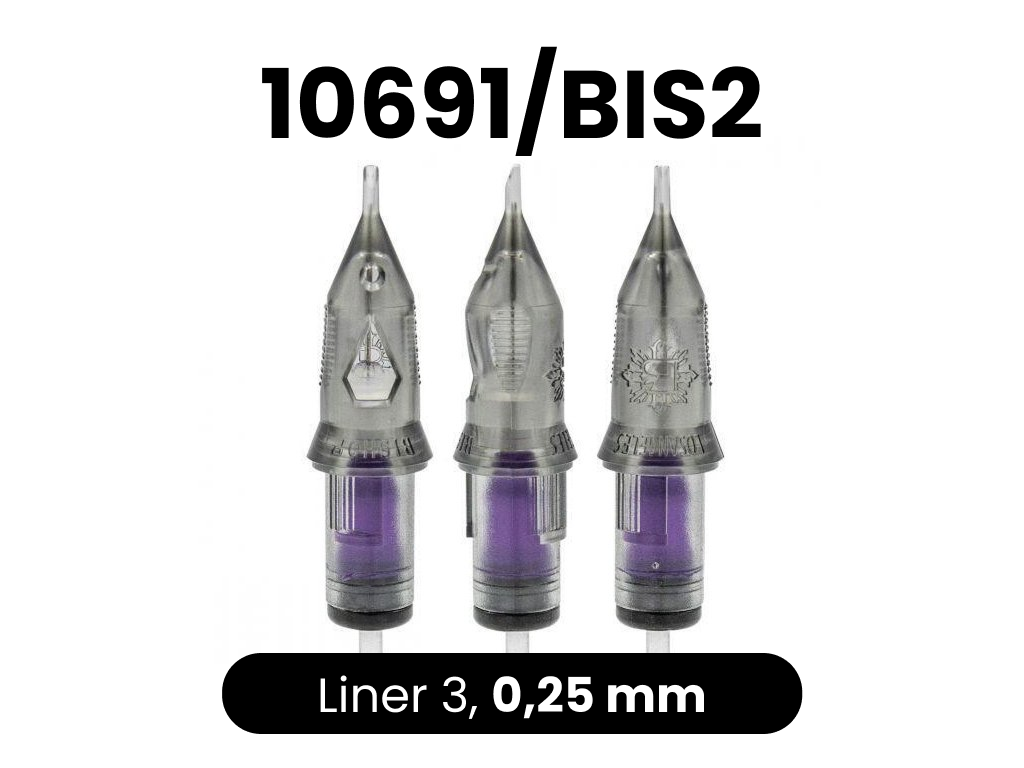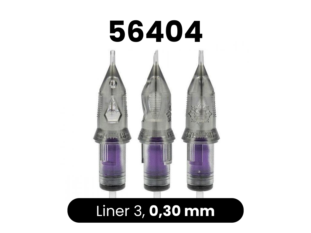 Sehr hochwertige Cartridges vom amerikanischen Hersteller Bishop. Die Cartridges haben eine Sicherheitsmembran, die verhindert, dass die Tinte in die Maschine läuft. Sie enthalten auch eine Belüftungsöffnung, die das Ansaugen der Tinte in die Cartridge erleichtert. Die Spitze der Cartridge entspricht sehr genau der Breite der Nadel. Die Nadeln bestehen aus 304SS-Stahl und sind für den medizinischen Gebrauch bestimmt. Das macht sie schärfer und langlebiger.