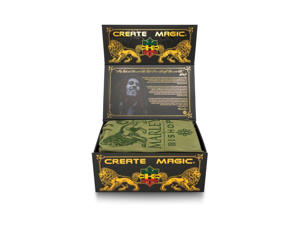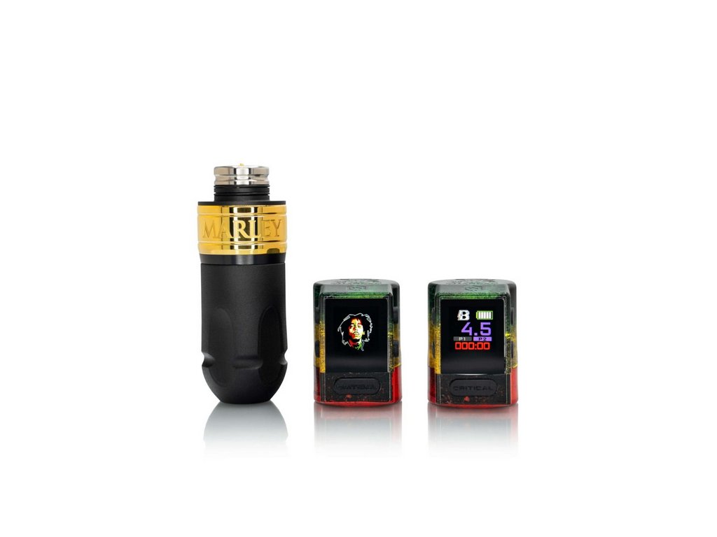 Dieses Set entstand in offizieller Zusammenarbeit zwischen Bishop Rotary und dem Marley Estate. Es basiert auf dem Bishop Power Wand Advanced in der Packer-Version, der für professionelles Packen und Arbeiten auf vollen Oberflächen entwickelt wurde. Der Hub beträgt 4,2 mm bei dieser Konfiguration fest. Die Maschine ist Teil einer Sammleredition mit exklusiven visuellen Elementen, die von Bob Marley inspiriert sind. Das Set wird in einer handgefertigten Holzbox im Stil eines Gitarrenkoffers geliefert, die sowohl zur Aufbewahrung als auch zum Transport der Ausrüstung dient.