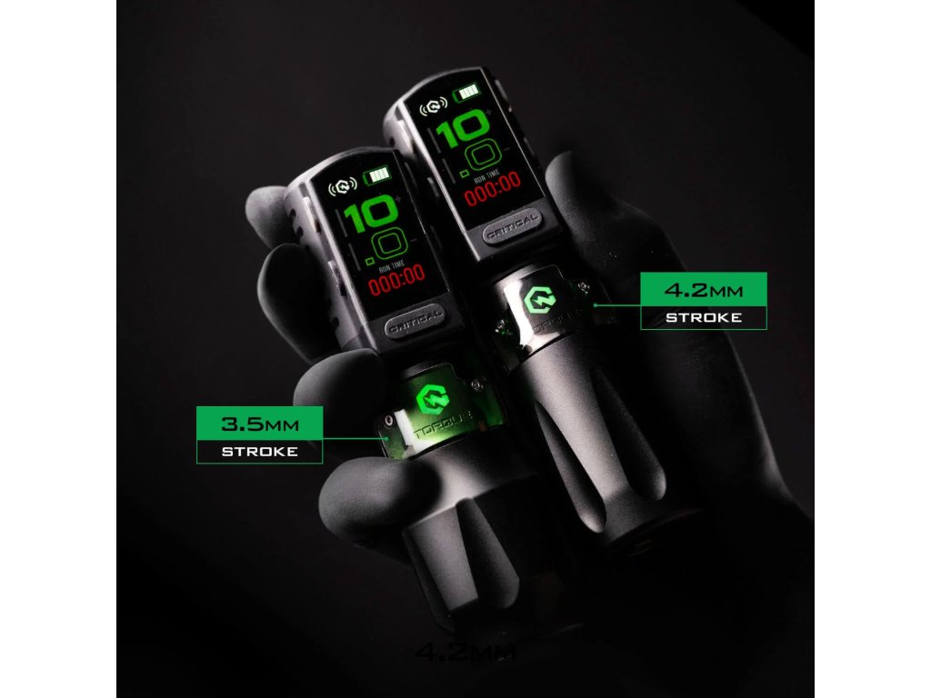 Die größte Macht ist hier. Das neueste Critical Torque Maschine in einem Full Set mit 3.5 mm Hub. Die kabellose Tattoo-Maschine Critical Torque arbeitet mit der 1st Precision Strike Technologie, die für ein sanfteres, schnelleres und effektiveres Tätowieren sorgt. Die vibrationsdämpfende Lösung sorgt für ein sanftes und nahtloses Tätowiererlebnis. Der Akku verfügt über ein größeres, intuitives 1,5-Zoll-Farbdisplay und ist vollgepackt mit Funktionen, die sogar eine Timer-Funktion zur Messung der Tätowierzeit ermöglichen. Das Motordesign erhöht die Steifigkeit und sorgt für mehr Drehmoment und Leistung.