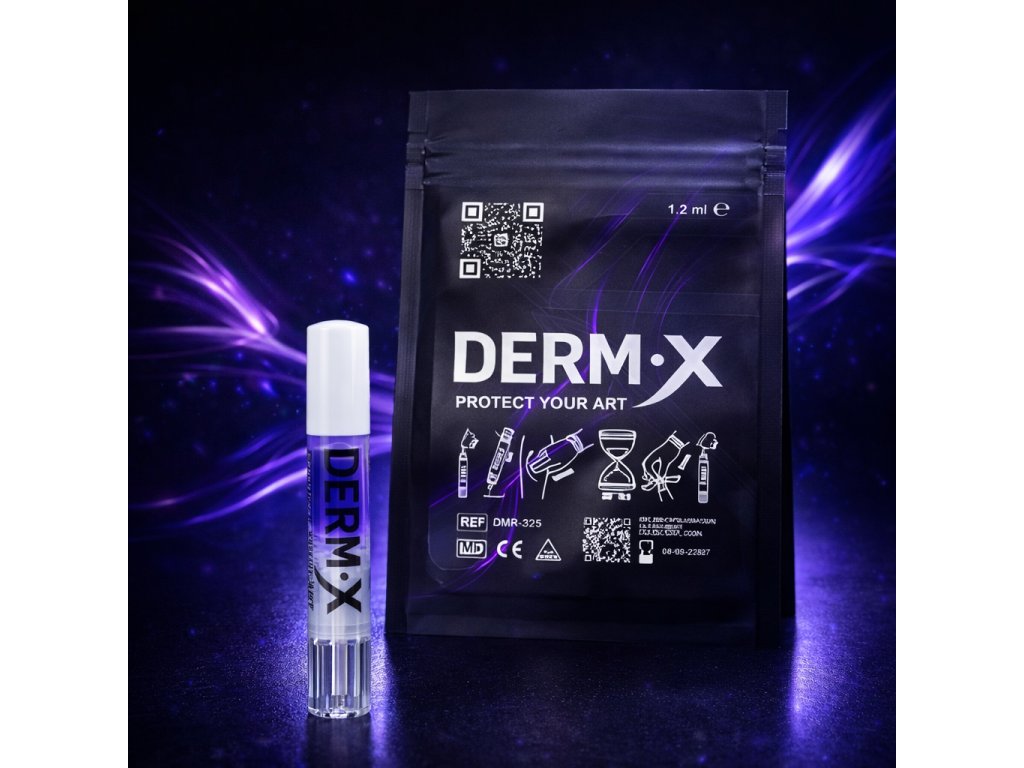 Im Gegensatz zu klassischen Folien oder Verbänden wird DERM X direkt in flüssiger Form auf die Haut aufgetragen. Nach dem Trocknen verwandelt es sich in eine Schutzschicht, die wasserfest, flexibel ist und sich den Bewegungen der Haut anpasst. Das Tattoo bleibt sichtbar, sodass der Heilungsverlauf kontinuierlich kontrolliert werden kann, ohne dass der Schutz entfernt werden muss.