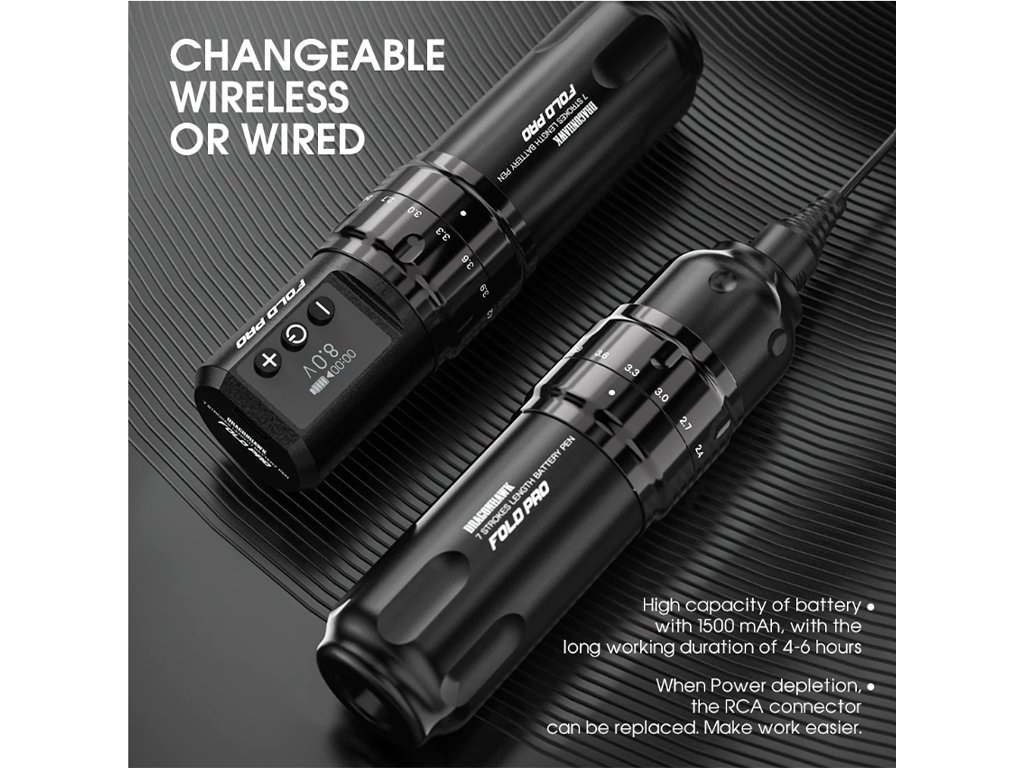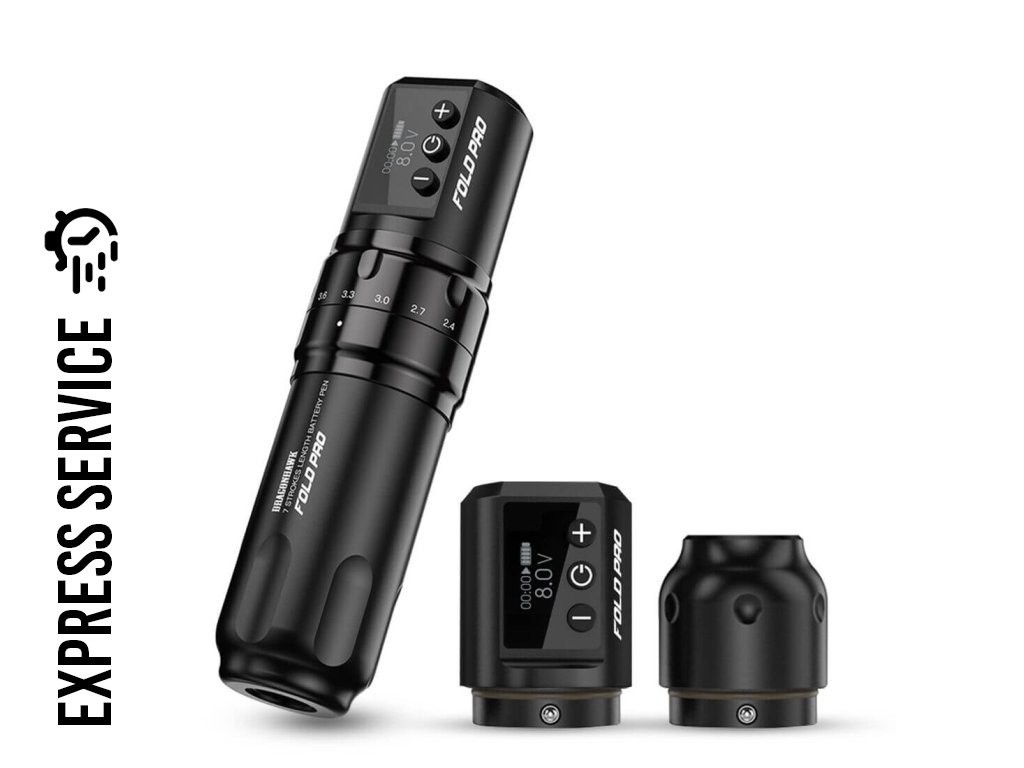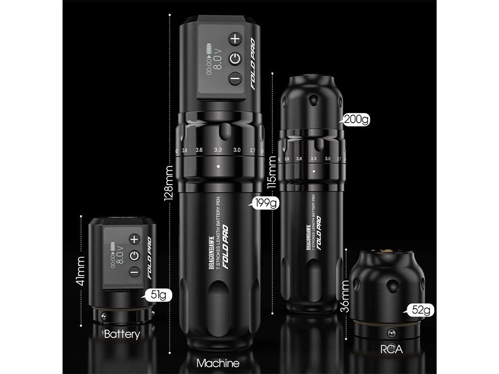 DRAGONHAWK Fold Pro - kabellose Tattoo Maschine, 2x Batterien, schwarz