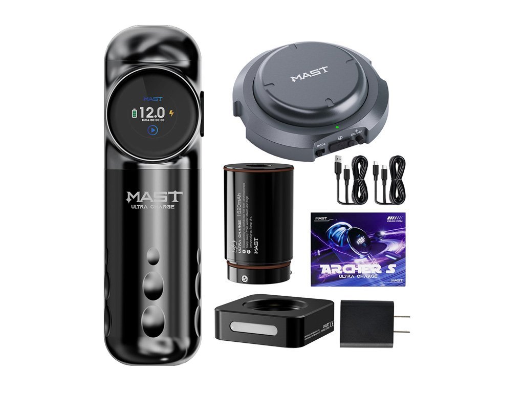 DRAGONHAWK Mast Archer S Grey Black Full Kit kabellose Tätowiermaschine, 4.2 mm, schwarz