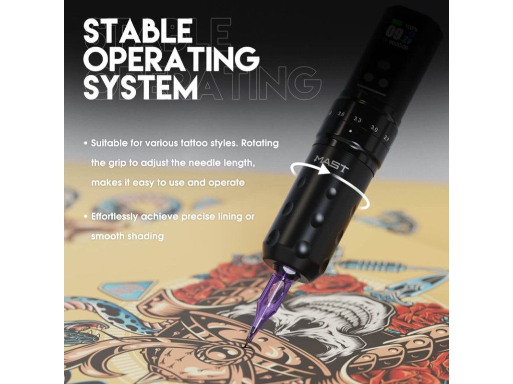 Die Mast Fold 2 Pro ist ein modulares, kabelloses System, das für den professionellen Einsatz in Tattoo-Studios entwickelt wurde. Die Maschine vereint mechanische Flexibilität, stabile Leistung und einfache Bedienung ohne externe Stromversorgung.