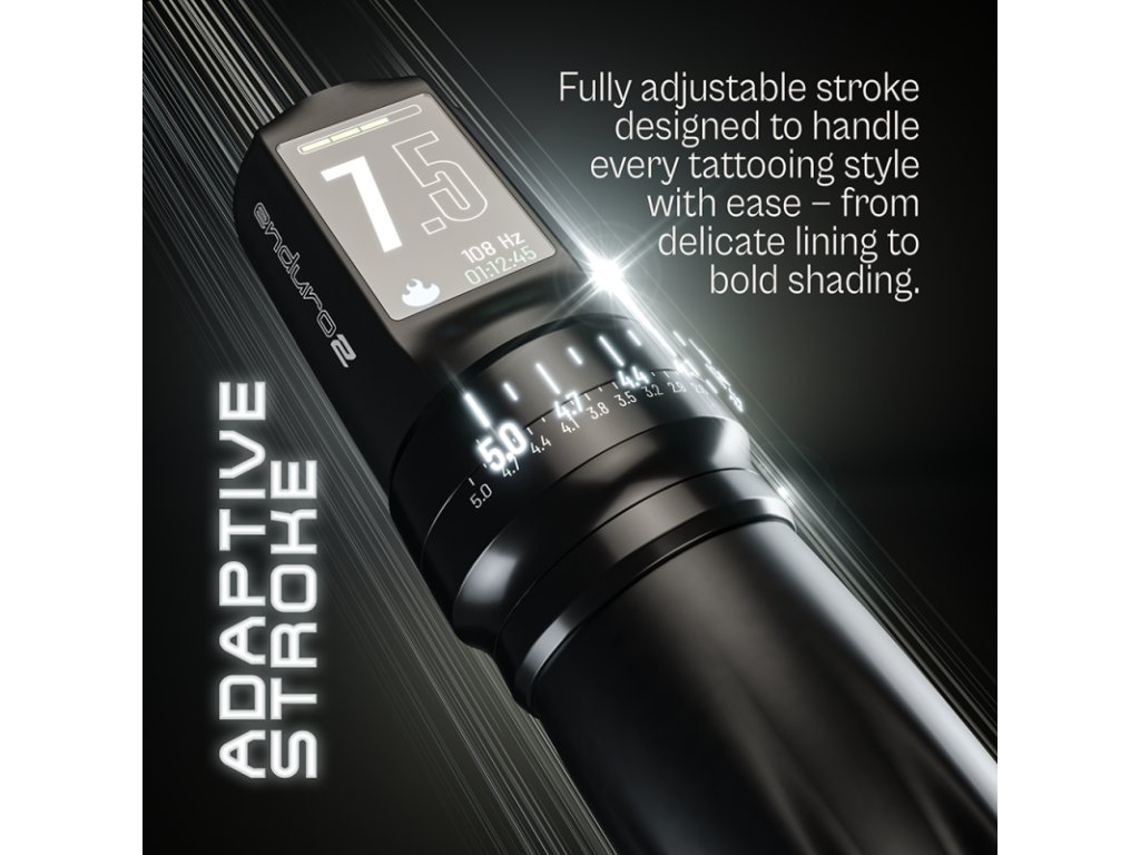 Equaliser Enduro2 je všestranný bezdrátový tetovací strojek navržený pro profesionální použití. Spojuje silný a plynulý chod, přesné ovládání a možnost rychle přizpůsobit zdvih jehly aktuálnímu stylu práce. Díky hladkému chodu, stabilnímu výkonu a minimálním vibracím je vhodný pro jemné linky, stínování i výrazné výplně.