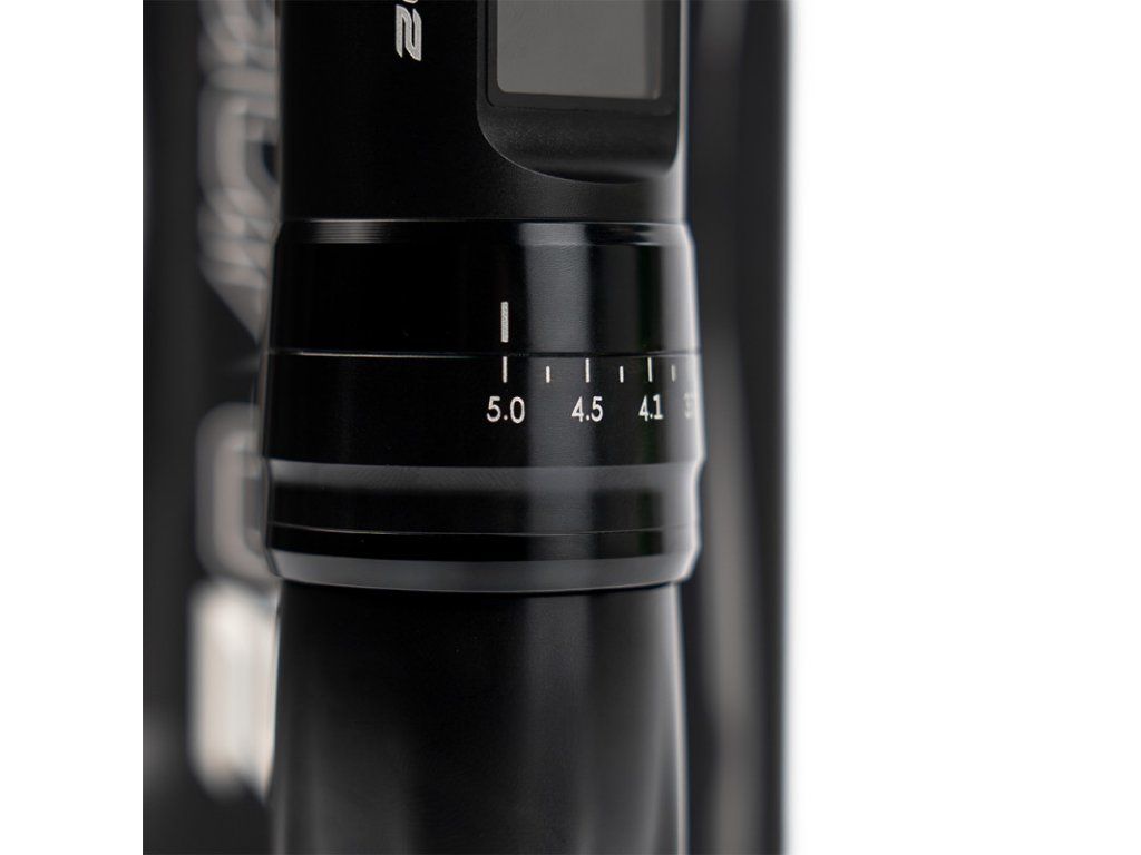 Systém nastavení zdvihu umožňuje pracovat v rozsahu od 2,5 do 5,0 mm, takže můžete během sekundy přejít z jemného detailu do výrazného stínování bez nutnosti měnit strojek. Tělo z hliníku zajišťuje nízkou hmotnost a ergonomický úchop pro pohodlnou práci i po dlouhé hodiny.
