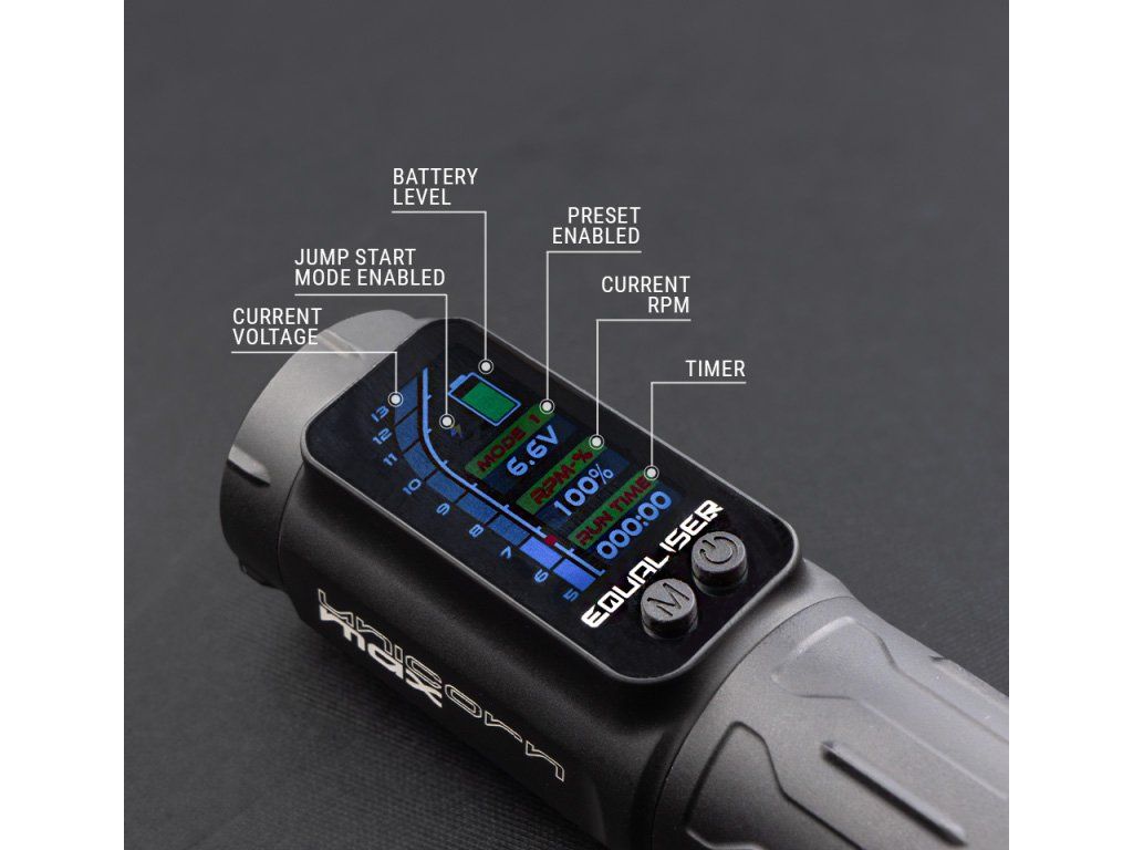Der Unicorn Max Equalizer vereint moderne Technologie mit intuitiver Bedienung. Er verfügt über ein großes, farbenfrohes LED-Display, das alle wichtigen Parameter übersichtlich anzeigt. So müssen Sie Ihre Arbeit nicht mehr unterbrechen, um Spannung, Motordrehzahl oder das aktive Spannungsprogramm zu überprüfen. Dank der präzise gestalteten Tasten lässt sich der Rasierer auch mit Handschuhen und nach dem Einwickeln einfach bedienen. Passen Sie Ihre bevorzugten Parameter einfach und bequem mit Unicorn Max an.