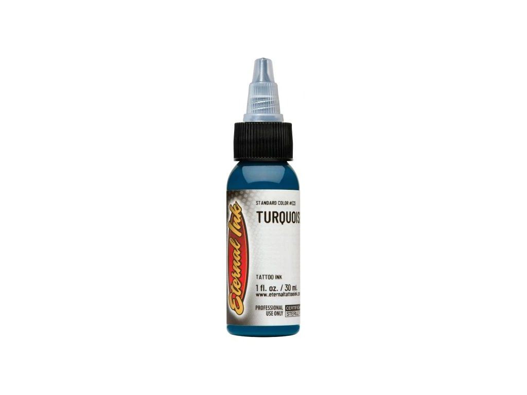 Jedná se o atraktivní, mírně tmavší odstín tyrkysové, který nabízí výraznou a dlouhotrvající barvu, která doplní jakýkoli návrh tetování. Barva je dostatečně tmavá a jemná, aby ji bylo možné použít ve velkých částech návrhu, aniž by odváděla pozornost od jemnějších detailů, a zároveň je dostatečně výrazná, aby nabídla vynikající způsob, jak zvýraznit složitější detaily návrhu. Inkoust je k dispozici ve výběru oblíbených velikostí a stejně jako všechny inkousty Eternal je netoxický a organický.