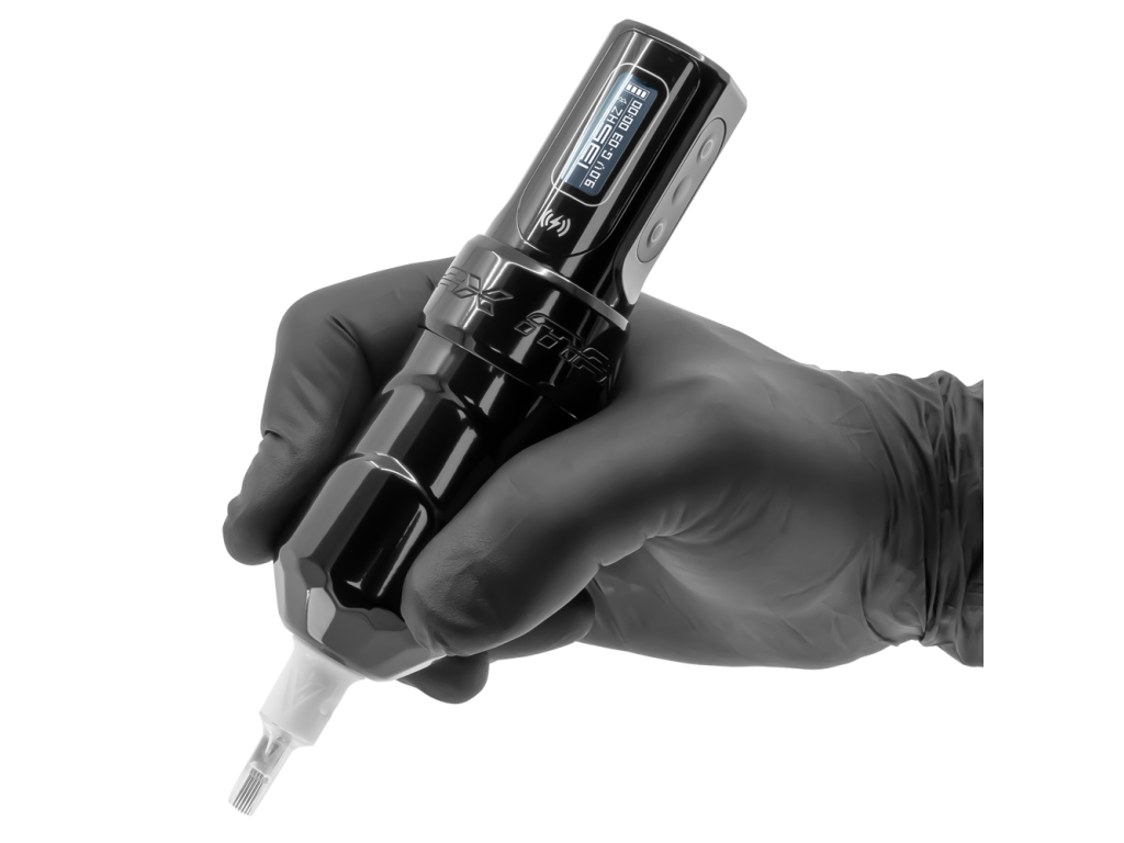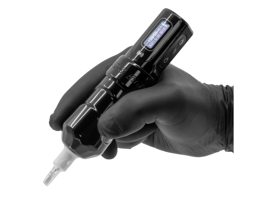 Kompatibel mit Universalcartridges vom Typ Cheyenne. Konsistente, zuverlässige Motor- und Nadelstichsysteme im Inneren sorgen für eine optimale Funktionalität Ihrer Cartridges. Außerdem liegt der Schwerpunkt der Maschine vorne, so dass die Künstler leichter und ermüdungsfreier arbeiten können.