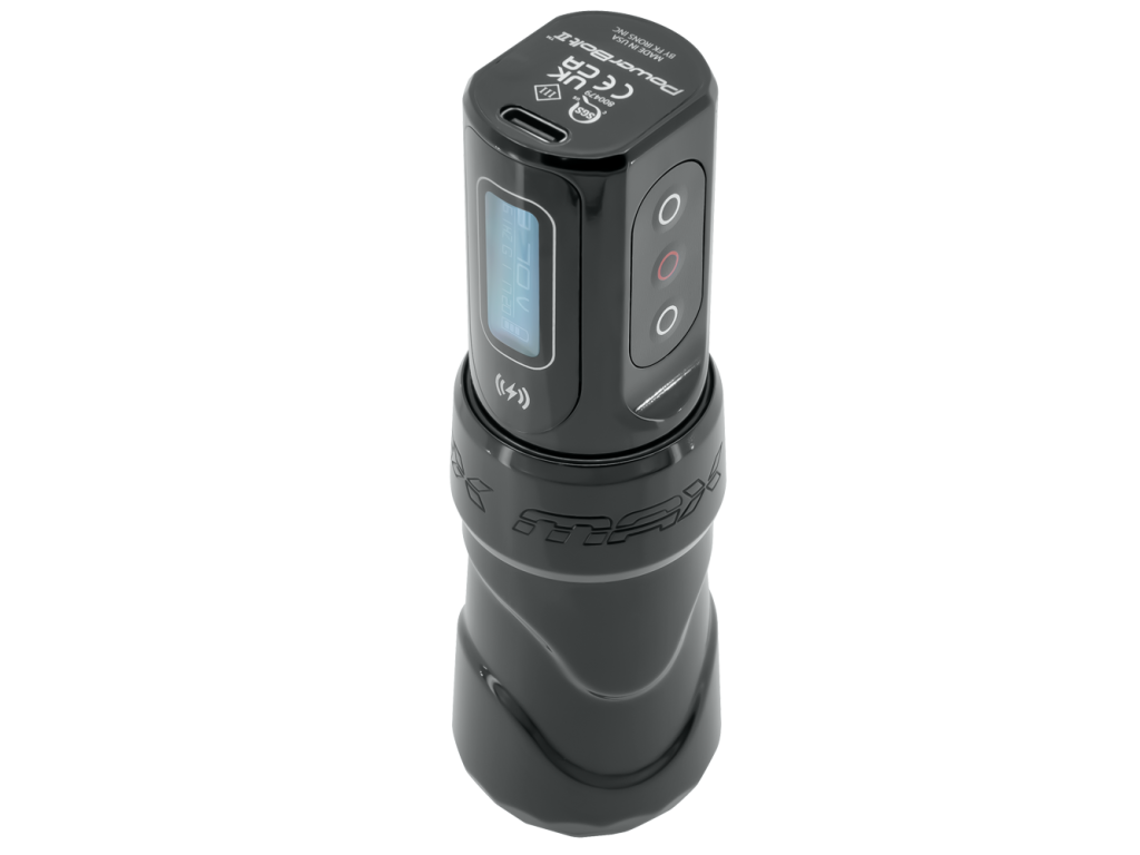 Über das Display und das aktualisierte Touchpad des Powerbolt 2.0 können Tätowierer das Menü anzeigen und aufrufen, um verschiedene Akkueinstellungen zu durchsuchen und anzupassen, ohne die Darklab-App verwenden zu müssen.