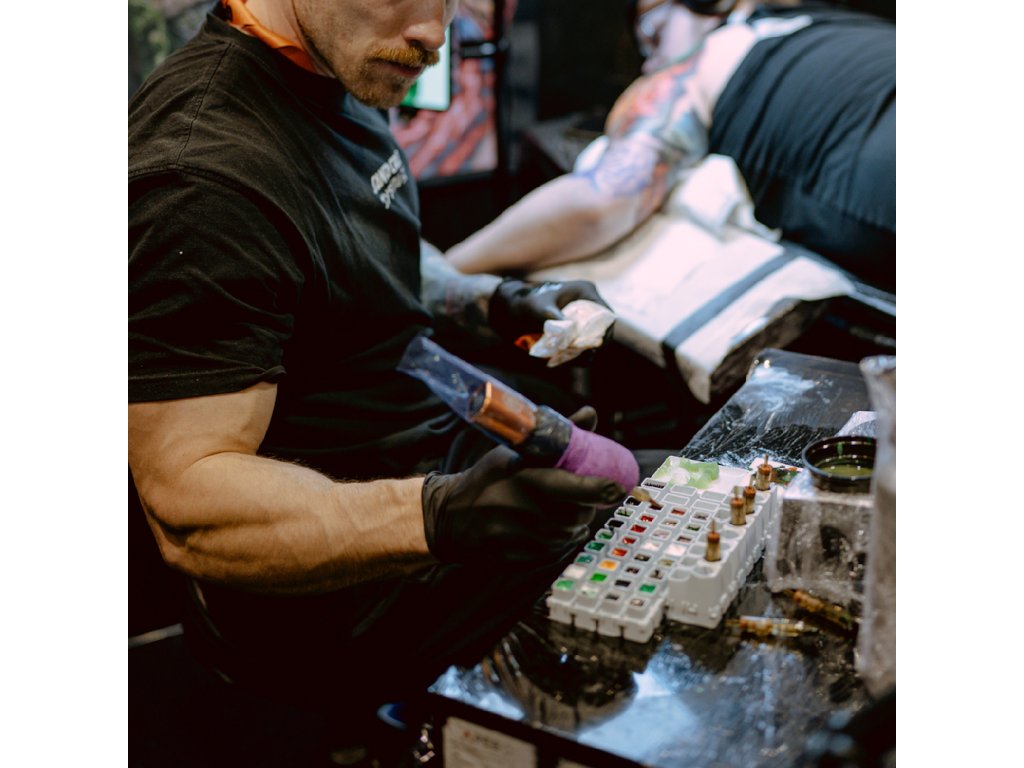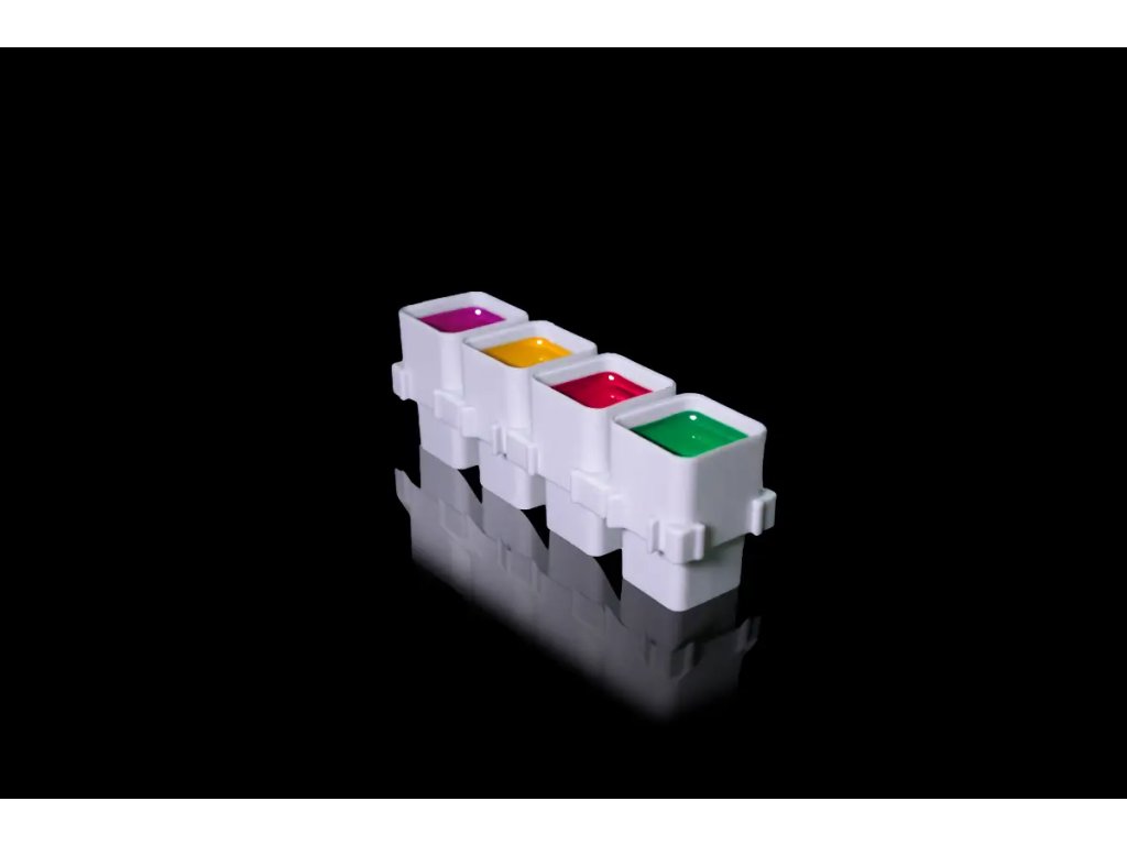 FrakCaps4 sind eine praktische Lösung zur Organisation des Tätowierarbeitsplatzes. Dank stabiler Kunststoffkonstruktion und reversiblem Design bieten sie eine sichere Aufnahme der Farbe und minimieren das Risiko des Verschüttens. Jedes Modul enthält vier Kammern in zwei verschiedenen Kapazitäten (10 ml und 14 ml), was eine flexible Nutzung beim Arbeiten mit mehreren Farbtönen oder größeren Farbvolumen ermöglicht.