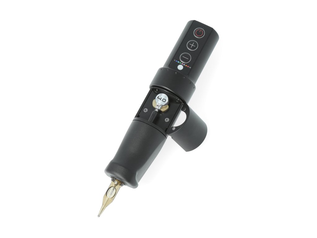 Eine kabellose Stift-Tätowiermaschine mit 4,0 mm Hub, optimiert für präzises und gleichmäßiges Linienzeichnen. Die Liner-Variante zeichnet sich durch ein direkteres Ansprechverhalten und eine stabile Leistung beim Arbeiten mit Linien aus.