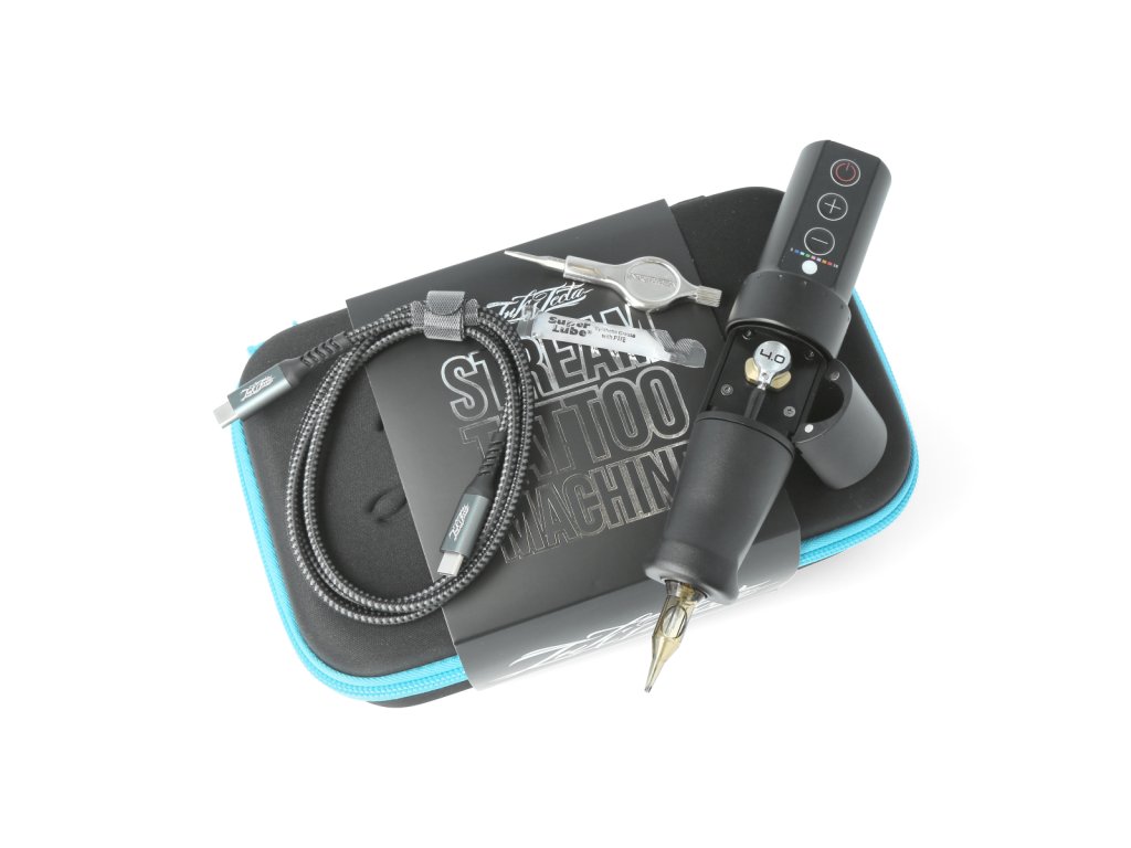 Die Inkjecta STREAM Liner ist eine kabellose Tätowiermaschine, die auf Nanomotor-Technologie und einem modularen Hub- und Torsionsstabsystem basiert. Diese Konfiguration wurde speziell für Linienarbeiten entwickelt, bei denen schnelle Reaktion, ein solider Stich und gleichmäßiges Eindringen der Nadel in die Haut entscheidend sind.