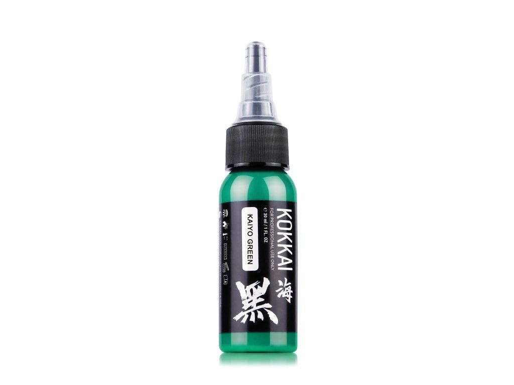 Kaiyo Green Tattoofarbe von Kokkai Sumi Inks kombiniert traditionelle japanische Sumi-Farbenherstellung mit moderner Tattoo-Farbenproduktion und kreiert so ein sattes, leuchtendes Grün. Inspiriert von den tiefen, natürlichen Farbtönen des Ozeans liefert diese Farbe einen kräftigen, kühlen Grünton mit außergewöhnlicher Konsistenz und gleichmäßiger Anwendung.