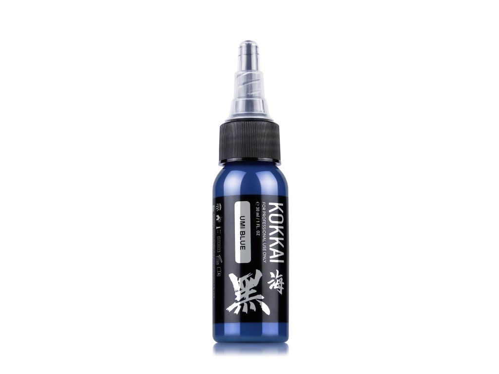 Umi Blue Tattoo Ink von Kokkai Sumi Inks kombiniert traditionelle japanische Sumi-Tintenherstellungstechniken mit moderner Tattoo-Tintenproduktion und kreiert so ein kühles, ozeanblaues Pigment. Inspiriert von den tiefen, ruhigen Farbtönen des Meeres, liefert diese Tinte lebendige, satte Farben mit außergewöhnlicher Konsistenz und gleichmäßigem Auftrag.
