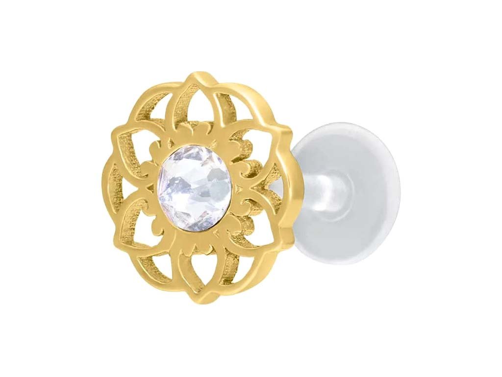 Labret-Piercing aus Biokunststoff, Mandala-Blume, 1,2 x 8 mm