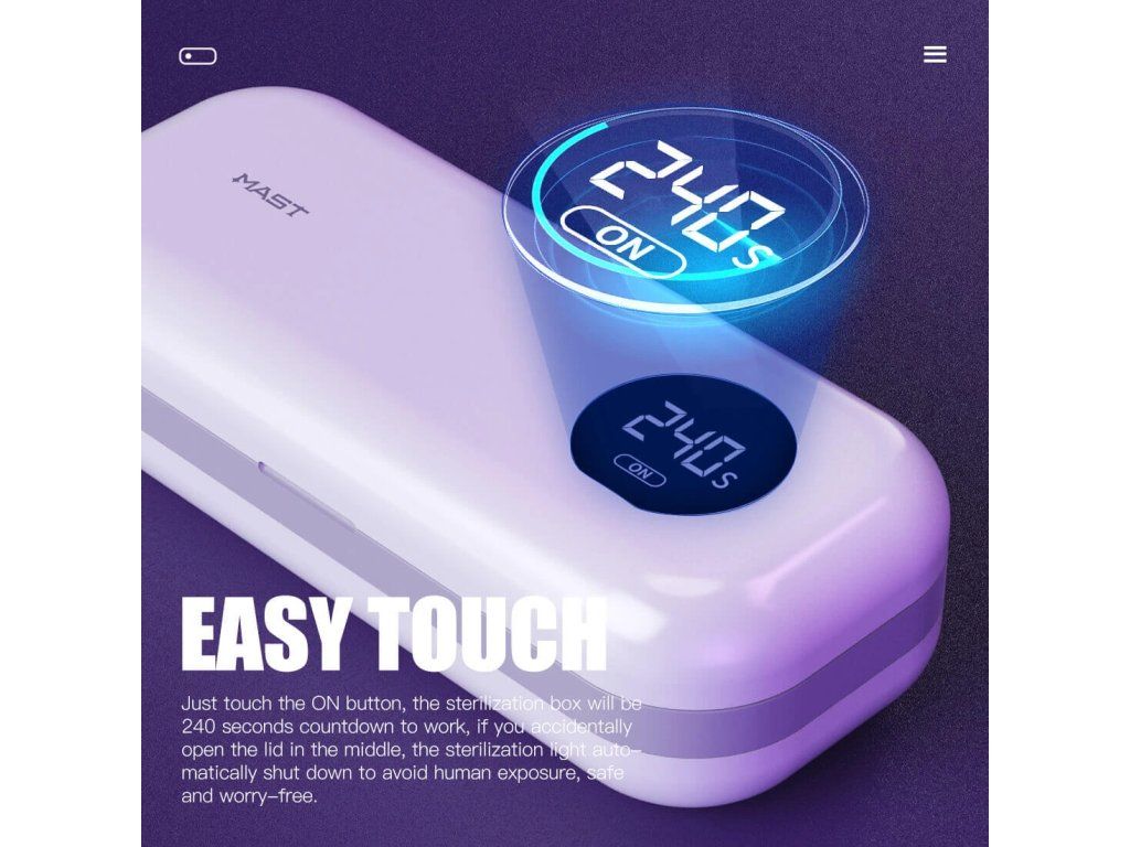 Diese kompakte und tragbare Sterilisationsbox nutzt die fortschrittliche UV+UVC-Technologie, um bis zu 99,99% der Bakterien, Viren und anderen Mikroorganismen in nur 240 Sekunden zu eliminieren.