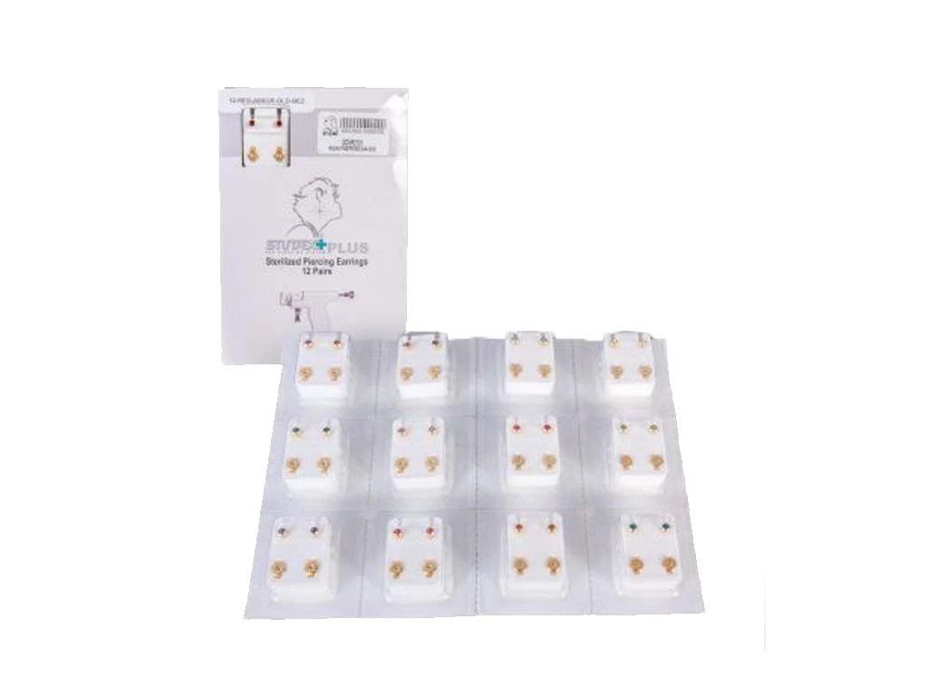 Ohrringe für Piercing Set Juli Rubin - rot STUDEX Plus 12Paar - gold Farbe