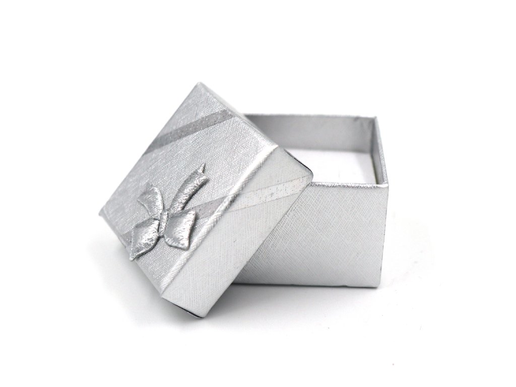 Pappschachtel für Piercings und Schmuck mit Schleife - silber
