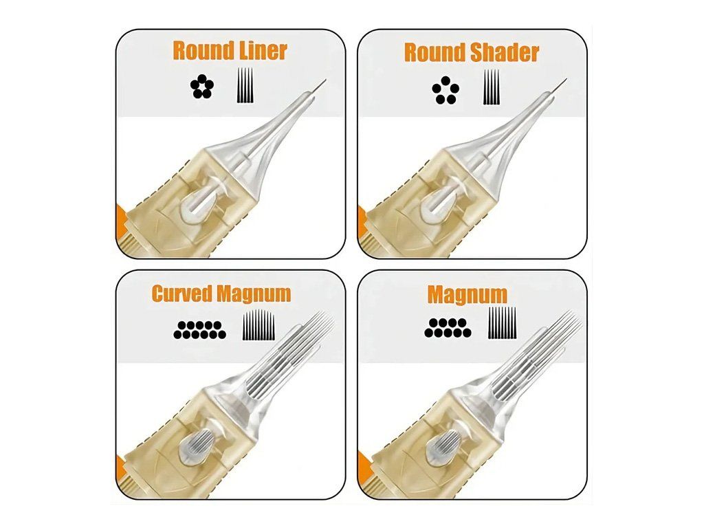 - Die RUNDEN Nadeln haben eine trichterförmige Spitze, um eine maximale Farbmenge und eine gleichmäßige Abgabe zu gewährleisten