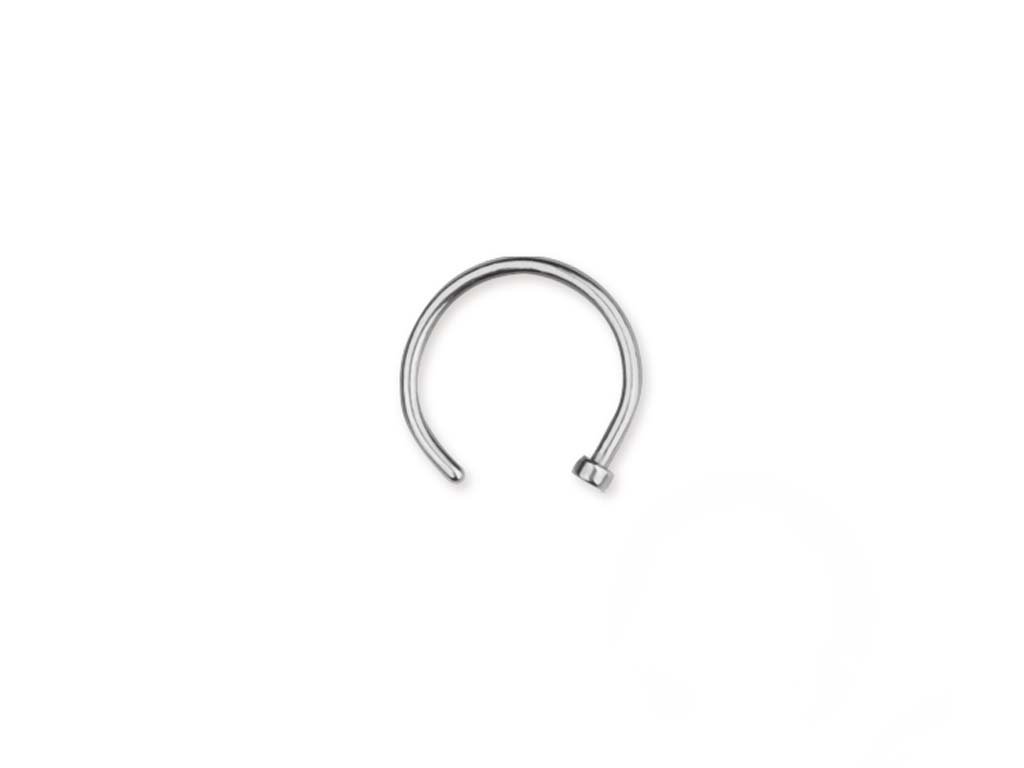Das Piercing-Labret aus 316L Chirurgenstahl hat eine flache, glänzende Oberfläche und eine glatte, kugelförmige Vorderseite.