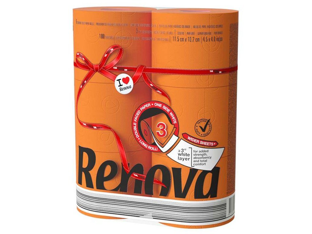 6 Rollen Renova Maxi Orange Toilettenpapier 3-lagig (insgesamt 1080 Blätter)