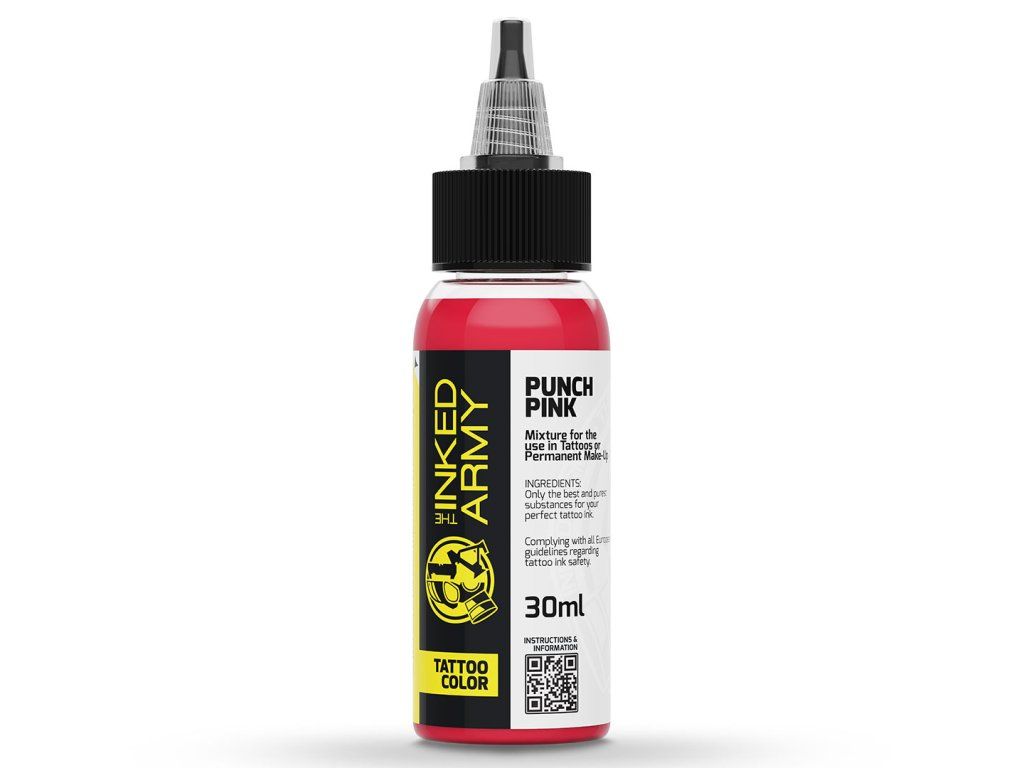 THE INKED ARMY Punch Pink ist ein kräftiger, dynamischer Pinkton aus einer Serie professioneller Tattoo-Farben aus Deutschland. Er bietet eine starke Farbintensität, die sofort ins Auge fällt und dem Motiv Dynamik verleiht.