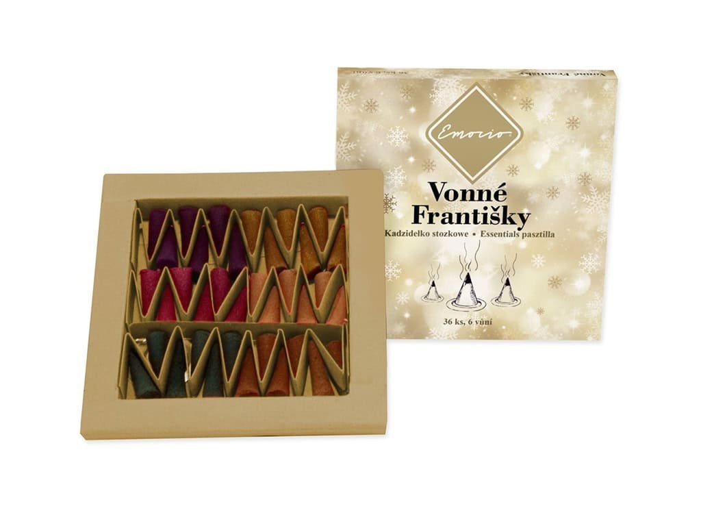Einfach zu verwenden. Zünden Sie die Spitze der Frangipane an, blasen Sie die Flamme aus und lassen Sie den Kegel auf einer feuerfesten Unterlage langsam abbrennen. Die Frantisken eignen sich für den Hausgebrauch und zur Ergänzung von Weihnachtsdekorationen. Für gut belüftete Räume und immer außerhalb der Reichweite von Kindern und Haustieren.